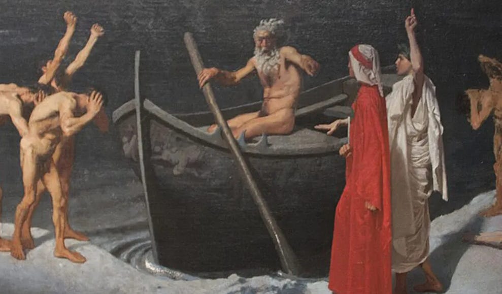 Noi, gli insegnanti, siamo come Caronte, nocchieri infernali: dobbiamo traghettare sudice anime dalla fossa dell’Inferno verso la possibilità di “riveder le stelle”. E lo so, che c’è una diffusa letteratura che associa il maestro a Virgilio, ma se prima Dante non sale sul legno, col cavolo che Virgilio lo può condurre da Beatrice.