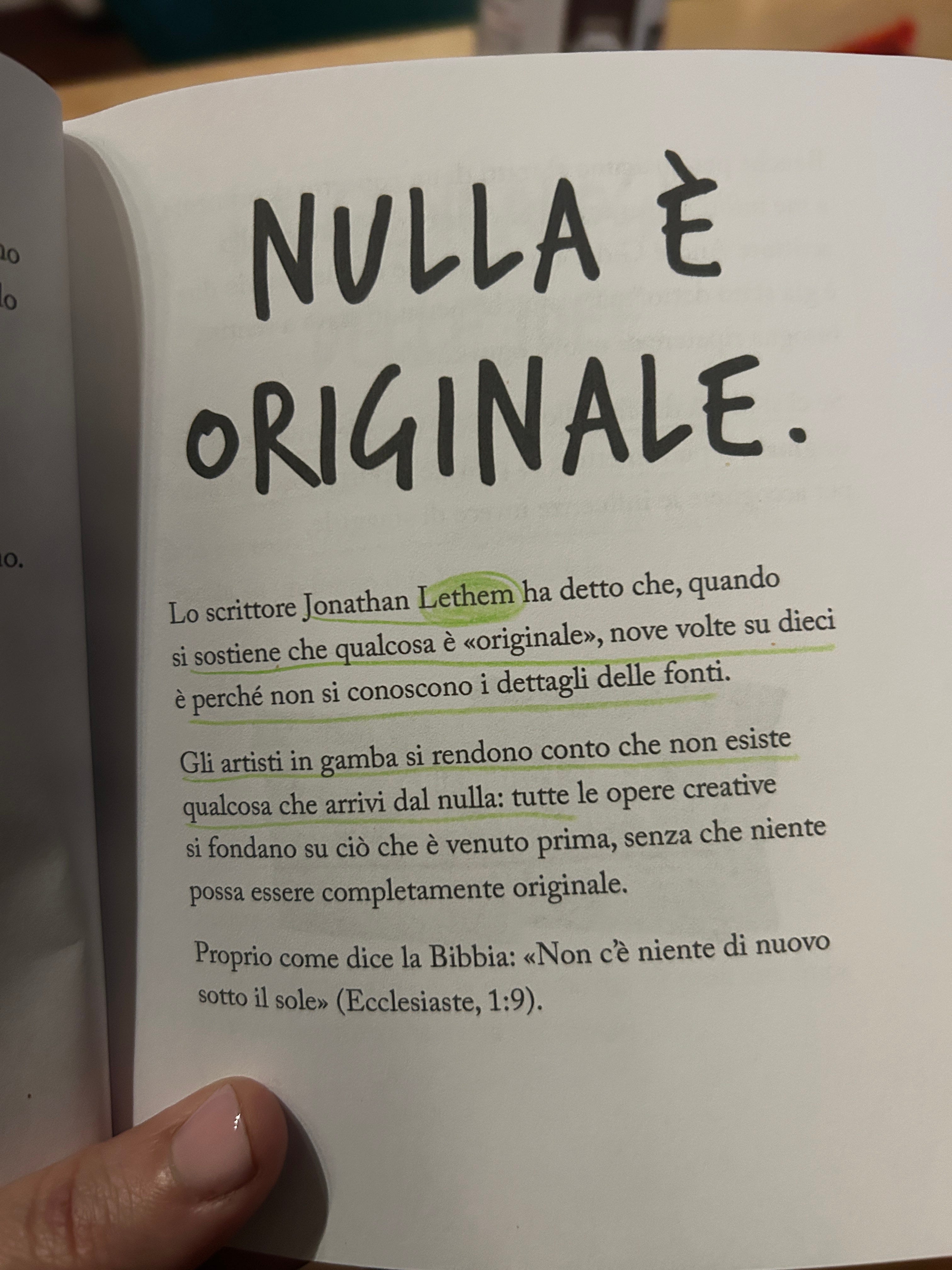 “Se ci si libera dal fardello di essere completamente originali, si può smettere di provare a trarre le cose dal nulla per accogliere le influenze invece di sfuggirle”. (A. Kleon)
